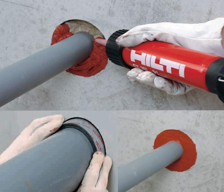 HVAC duct and fire hydrant gape Hilti CP-606 Sealant system work